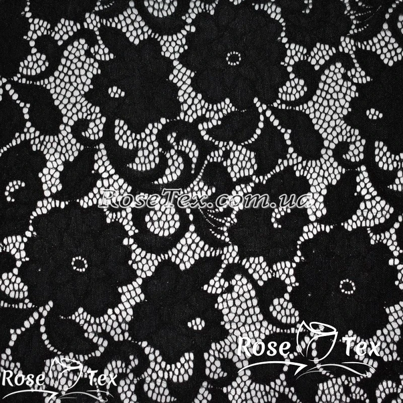 Тканина гіпюр мереживо квіти Чорний
