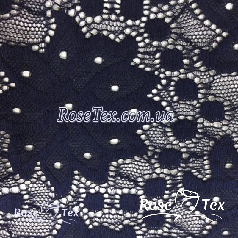 Купити тканину гіпюр мереживо квіти Темно-синій