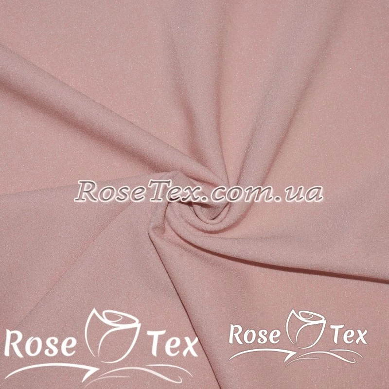Креп дайвінг люрекс ніжно-рожевий - трикотажне синтетичне полотно, відмінною рисою якого є шорстка поверхня і приємний блиск. До складу тканини входять поліестер 95% і еластан 5%.