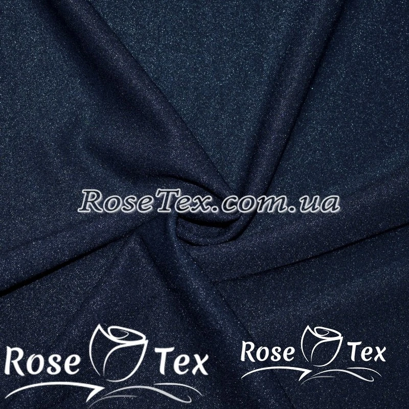 Креп дайвінг люрекс темно-синій - трикотажне синтетичне полотно, відмінною рисою якого є шорстка поверхня і приємний блиск. До складу тканини входять поліестер 95% і еластан 5%.